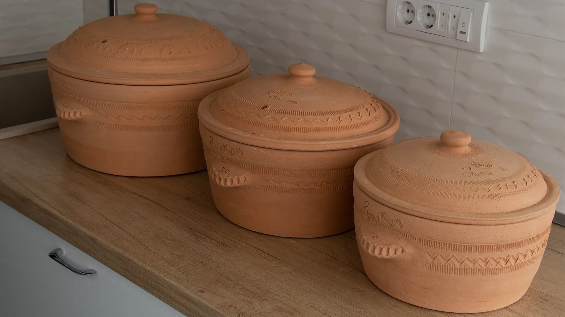 - Zemljana šerpa sa poklopcem od 4-5 litara za šest osoba, širine 30 cm sa ručkama i visine 20 cm sa poklopcem;